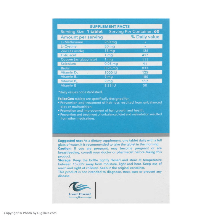سایر توضیحات: پیشگیری و برطرف کننده ریزش مو ناشی از کمبود ویتامین و سوء تغذیه
